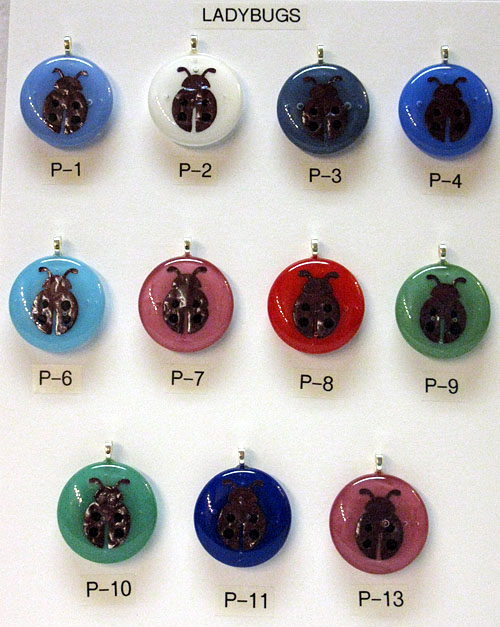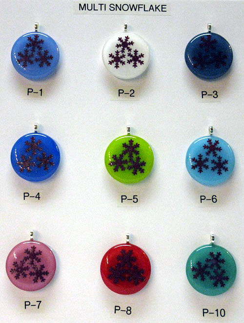 PENDANTS Price: $20.00 CDN each Order now -- click here! Price includes sterling silver plated bail. Shipping and handling are extra. Wholesale pricing is available - please contact us. Colour key: P-1: Periwinkle P-2: White P-3: Powder Grey / Purple P-4: Cobalt Blue P-5: Spring Green P-6: Light Cyan P-7: Petal Pink P-8: Tomato Red P-9: Mineral Green P-10: Apple Green P-11: Deep Cobalt Blue P-12: Plum P-13: Pink P-14: Black P-15: Red PAPERWEIGHTS Price: $65.00 CDN each Order now -- click here! Size is approximately 3 1/2" high by 4" across. The patterns in these paperweights are random and gorgeous. Makes an ideal gift for that special business-oriented person in your life who seems to have everything else. Also makes an attractive and novel conversation piece for any tabletop space in your home. ![]() ![]() Colour key (above centre, and left to right): R-61: White R-5: Pink R-10: Purple R-35: Green R-41: Blue R-19: Topaz MAPLE LEAF PAPERWEIGHTS Price: $40.00 CDN each ![]() Maple Leaf paperweights range in size from approximately 3 - 3 1/2" across. Choose from paperweights with 3 large Maple Leaves or 5 small Maple Leaves inside. Colour key (above left to right): L-1: 5 small maple leaves L-2: 3 large maple leaves BOWLS & SCULPTURES These beautiful and unique pieces will make their online debut soon. Please contact us for details. |